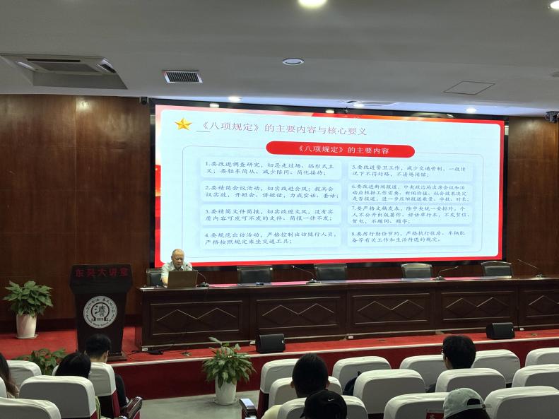 开班典礼结束后,方书记以“坚守政治本色,深化作风建设:深入贯彻中央八项规定精神学习教育”为切入点,讲授专题党课,他围绕历史意义、时代要求、主要内容与核心要义四个方面,系统阐述了中央八项规定的核心内容,并结合党的相关理论与精神进行深入解读。授课过程中,方书记结合自身经历生动阐释了党的廉洁作风与反对铺张浪费的重要性,使学员们对中央八项规定精神有了更深刻的理解,对党的理论体系和实践要求有了更加全面的认识。