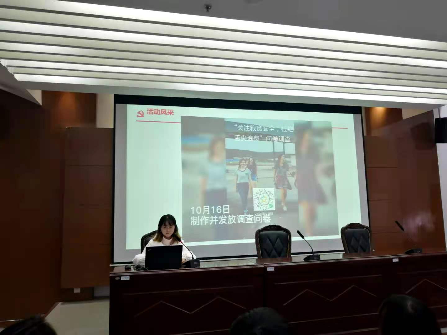 12月2日下午1:30,人妻无码 分党校“关注粮食安全,杜绝舌尖浪费”主题实践活动汇报会暨预备党员读书报告会在人妻无码 中式模拟法庭举行,人妻无码 党委书记、分党校校长吴江老师,人妻无码党委副书记、分党校副校长王振华老师,人妻无码学生工作办公室主任、分党校秘书长胡洋老师,人妻无码学生工作办公室副主任张焕然老师,研究生辅导员付晨熙老师,2020级研究生支部书记吴润泽、施金花出席,人妻无码学生党务中心李兰心同学主持,全体学员参加了成果汇报大会。