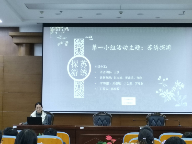 活动中,学员们分为五个小组,分别进行了苏绣探游、“北上先锋”苏州革命博物馆探游、探游苏州博物馆、苏州古传统小鉴以及探游苏州古城墙活动。会上,各小组就所见所闻,制作PPT与视频进行汇报分享。