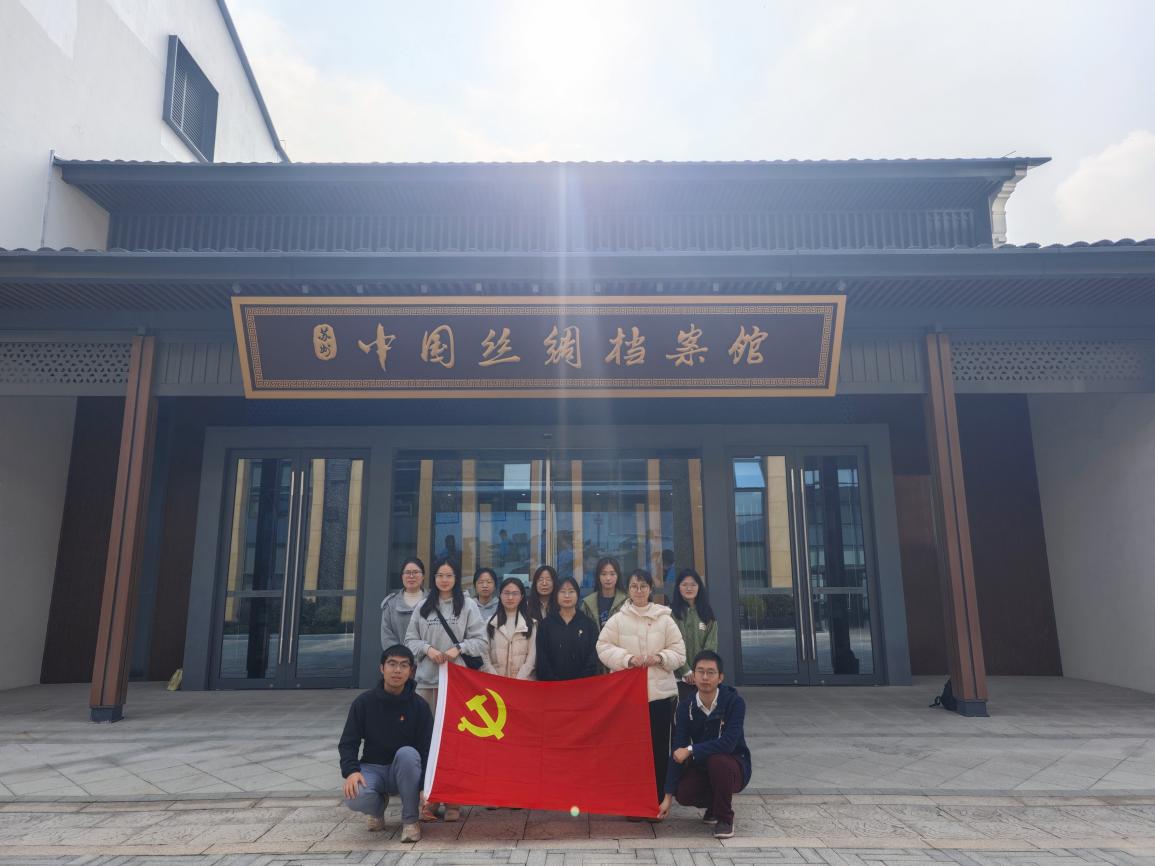 法律硕士(非法学)研究生二支部的党员们走进中国丝绸档案馆,通过实地参观学习,近距离地感受苏州特色的丝绸技艺及非物质文化遗产的独特魅力,感受到了中丝馆在丝绸档案在发展新质生产力方面的成效。